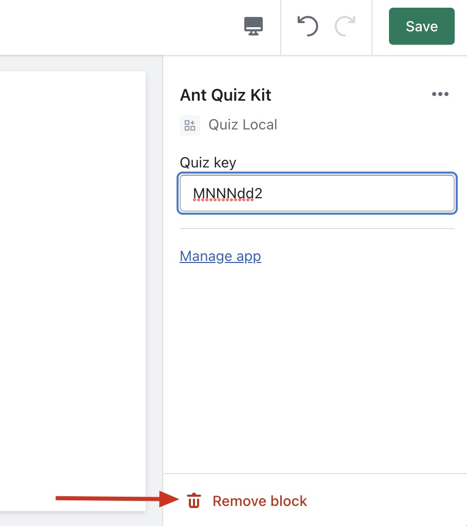 Once you do that, our app's code will be removed from all themes, ***except for the Home page section**.* It's important to note that deleting your app means that your quiz will no longer work. Hide the pages or the sections before this process to prevent any issues.&#x20;